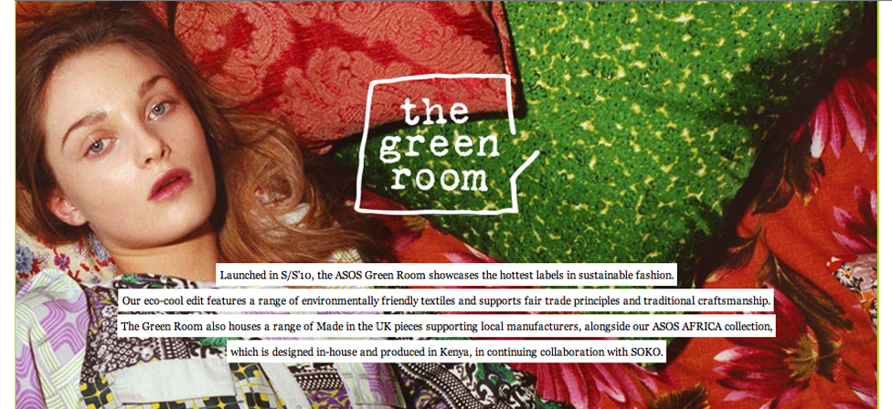 Another major e-tailer ASOS has its own Green Room with 500+ styles ranging from People Tree to reclaimed vintage looks.