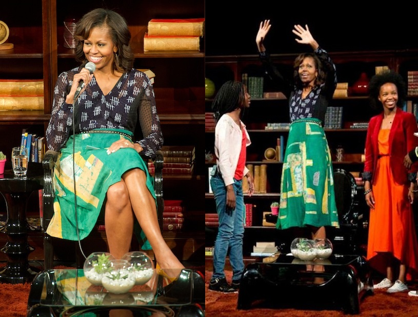 Michelle Obama wearing Ghanaian and Nigerian designers for her MTV Base interview. Photo credit: Leeroy Jason.